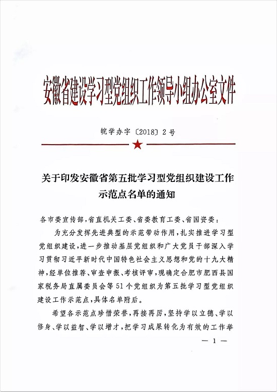 近日,安徽省建设学习型党组织工作领导小组授予高新投公司党委“安徽省第五批学习型党组织建设工作示范点”荣誉称号。